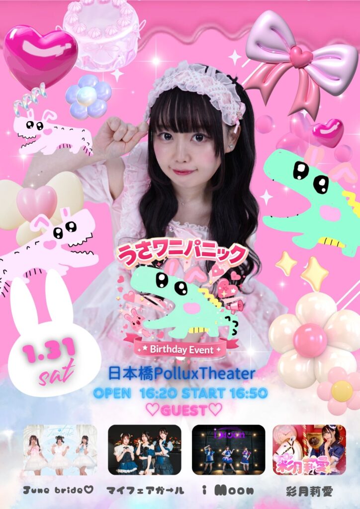 | 1月31日(土) 日本橋PolluxTheater 「うさワニパニック!夢咲うさぎ生誕祭」 OPEN 16:20 / START 16:50 優先エリア前売 2,500円 / 優先エリア当日 3,000円(別途1ドリンク) 一般エリア前売 1,000円/一般エリア当日1,500円(別途1ドリンク) https://tiget.net/events/456388 出演:プラチナリボン / マイフェアガール / 彩月莉愛/ June bride♡/ i Moon ※OPEN / START時間は変更になる可能性がございます 【入場の順番】 前売優先エリアチケット整理番号順 → 前売一般チケット整理番号順 → 当日優先エリアチケット → 当日一般エリアチケット 【備考】 ・チケット当日払い ・オールスタンディング ・再入場可(ドリンク代不要) ・コールMIXなど声出し可 ・写真撮影および動画撮影の可否は各出演グループの運営方針に従って進行 【TIGETに関して】 ・キャンセル 都合により来られなくなった方は必ずキャンセル処理をお願いします。 キャンセル処理はお客様ご自身で行って頂くことが可能です。 一度キャンセルすると元に戻すことはできませんので、あらかじめご了承ください。 |