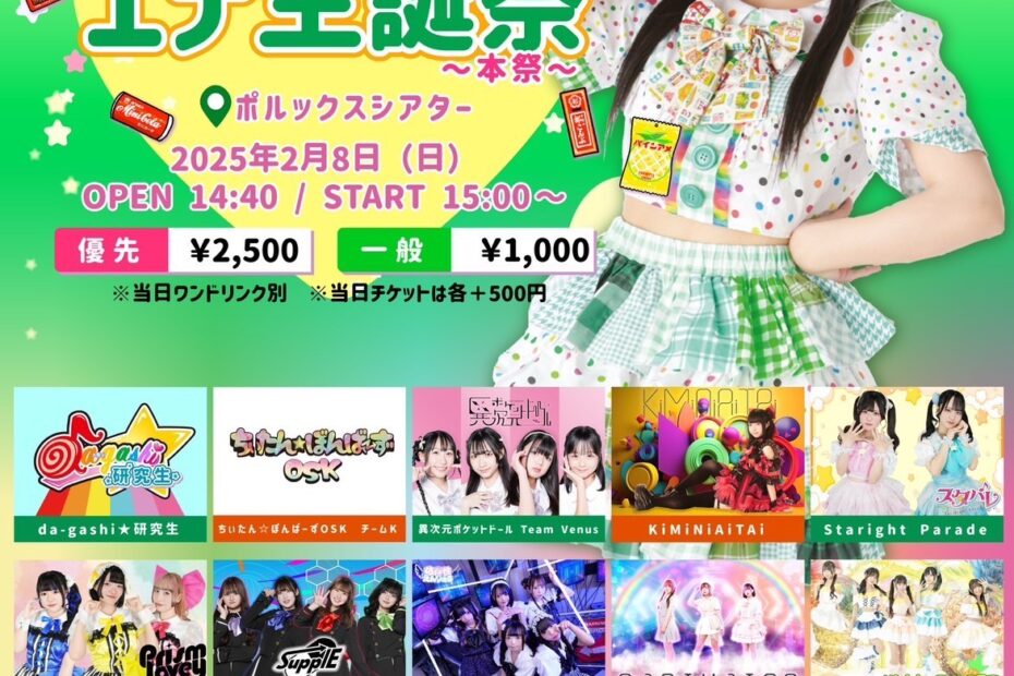 タイトル:da-gashi☆「エナ」生誕祭ライブ~… 続きを読む »2026年2月8日(日)da-gashi☆「エナ」生誕祭ライブ~本祭~